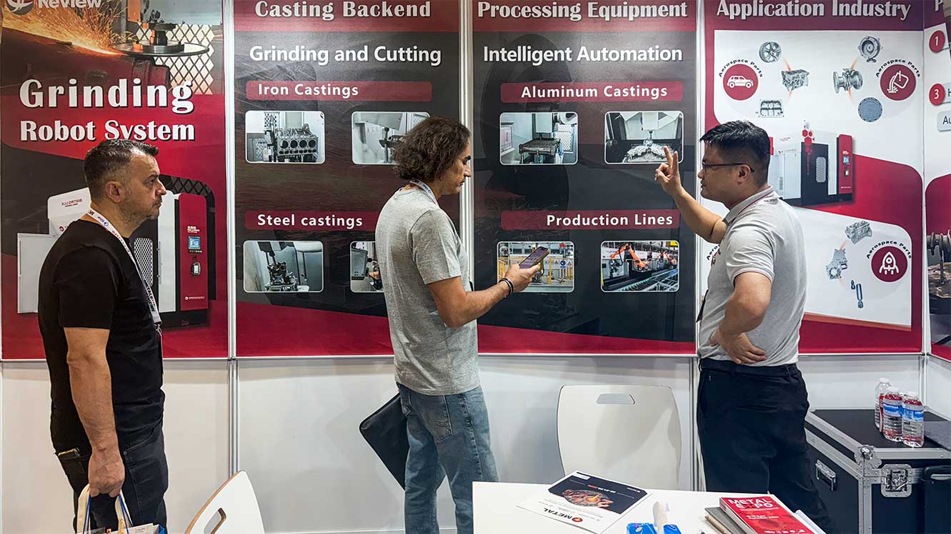 بصفتها شركة رائدة في مجال الابتكار في صناعة أتمتة المسابك في الصين، عرضت شركة NEVIEW العديد من منتجاتها تقنيات الطحن الذكية الأساسية، مشتمل: